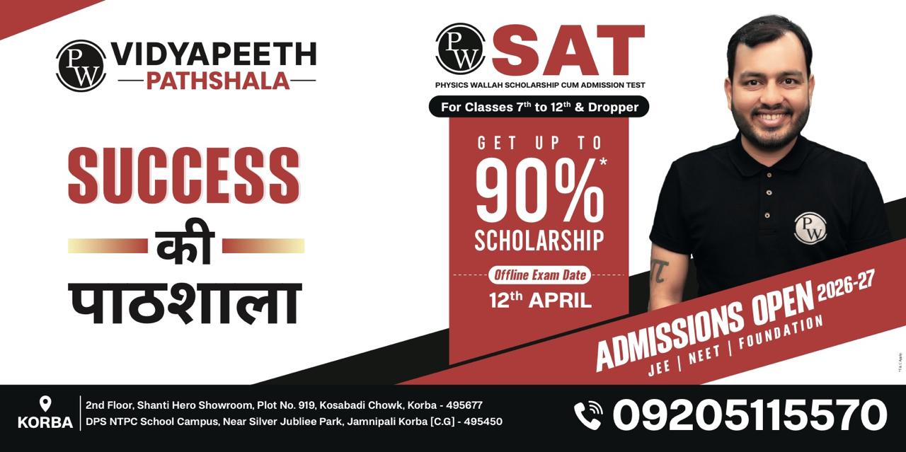कोरबा: शहर के विद्यार्थियों के लिए एक बड़ा शैक्षणिक अवसर सामने आया है। Physics Wallah Vidyapeeth Pathshala,...